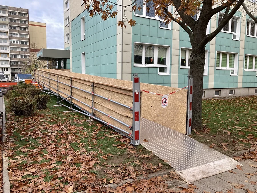 Ein besonderer Schwerpunkt liegt auf der Erstellung barrierefreier Rampen, etwa Rollstuhlrampen oder begehbaren Stegen. Diese werden so konzipiert, dass sie den geltenden Vorschriften für Barrierefreiheit entsprechen und gleichzeitig eine stabile, rutschfeste Nutzung ermöglichen. Damit schaffen wir sichere Übergänge und Wege – sowohl auf Baustellen als auch bei Veranstaltungen oder Sanierungsprojekten.